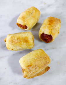 Choricillos envueltos en masa de hoja.
