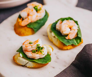 6- Camarón, con base de queso       philadelphia y ciboulette.