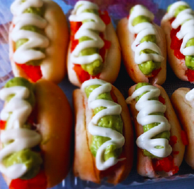 Pancito pequeño con salchicha, mayonesa y 2 agregados (palta, tomate o chucrut)